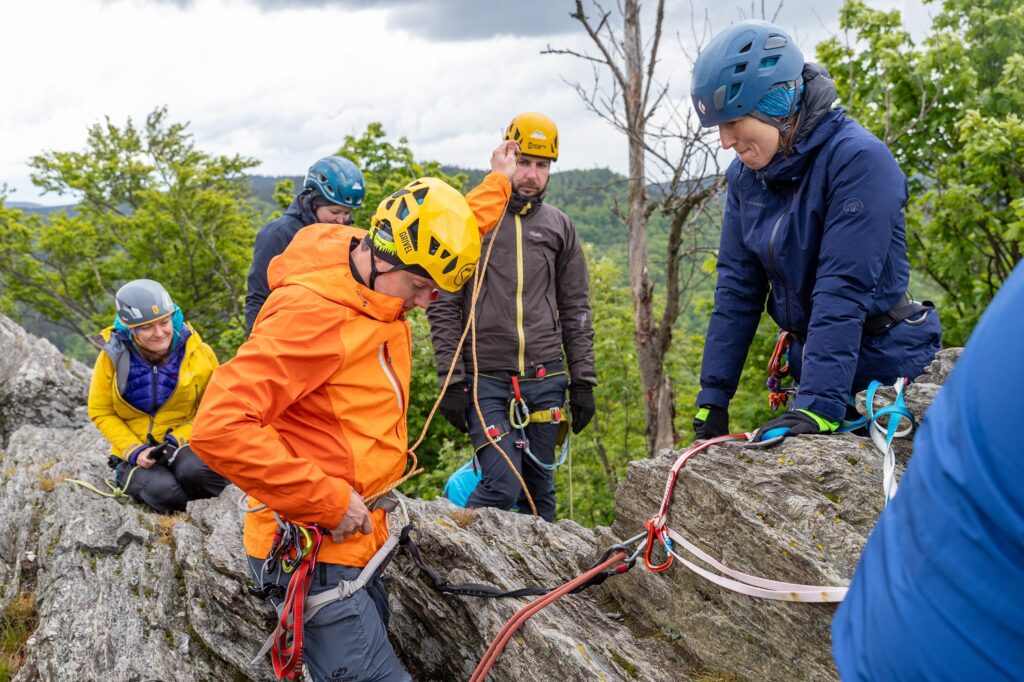 Hlavní důraz klademe na metodiku a bezpečnost, aby se z vás stali samostatní a zodpovědní lezci.