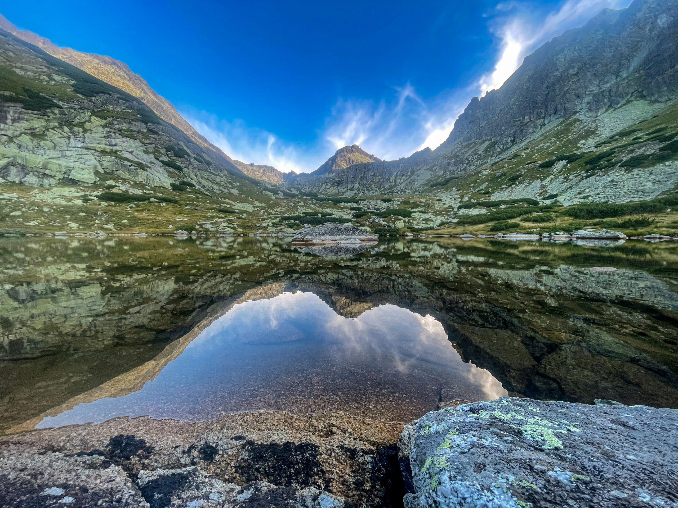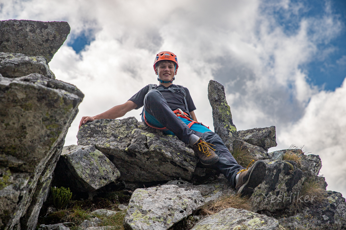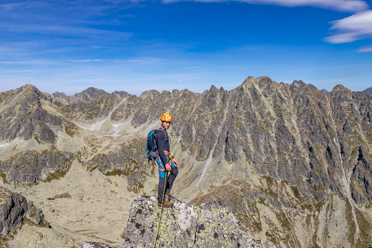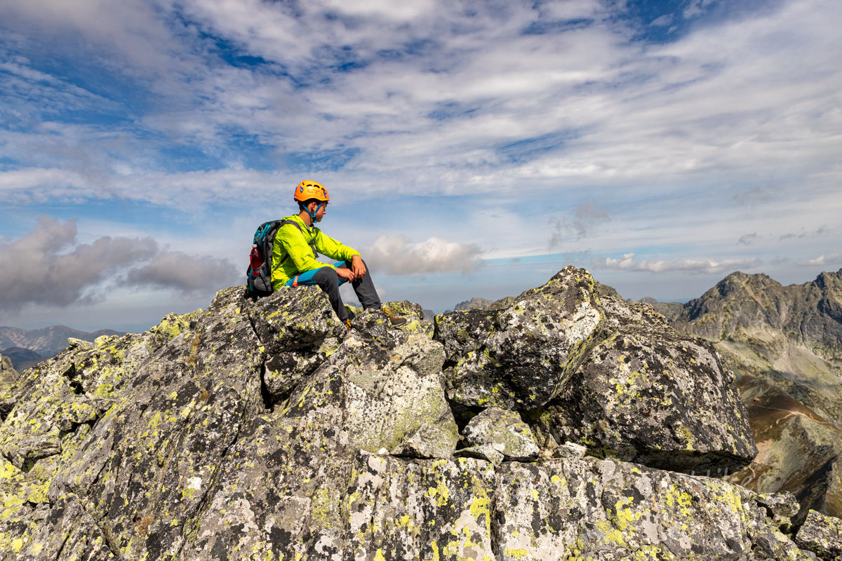Nakonec jsme nahoře – unavení, ale spokojení z hřebene, počasí výhledů a vlastně i té bolesti která k tomu patří. Chvilka odpočinku, výhledy, a pak už jen sestup k chatě.
