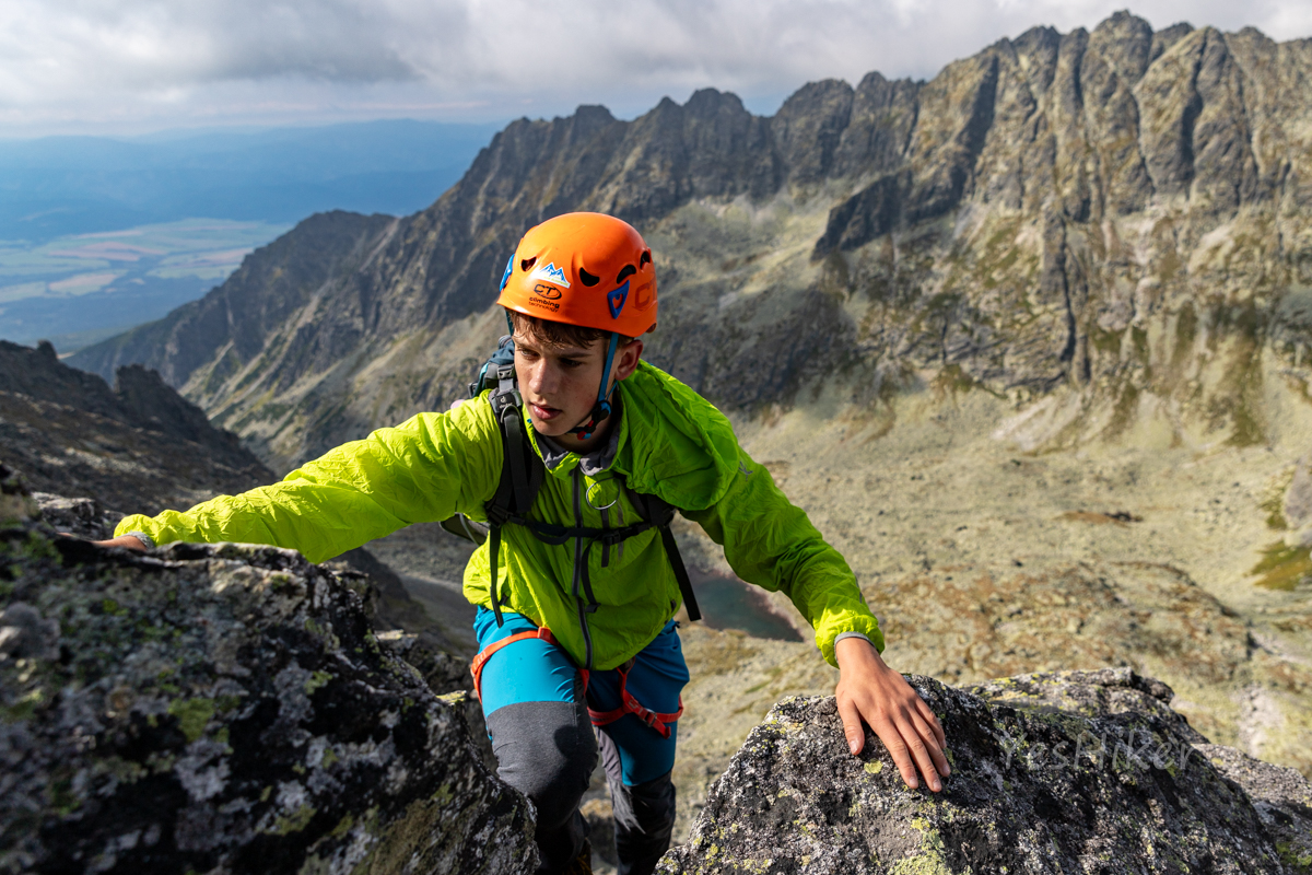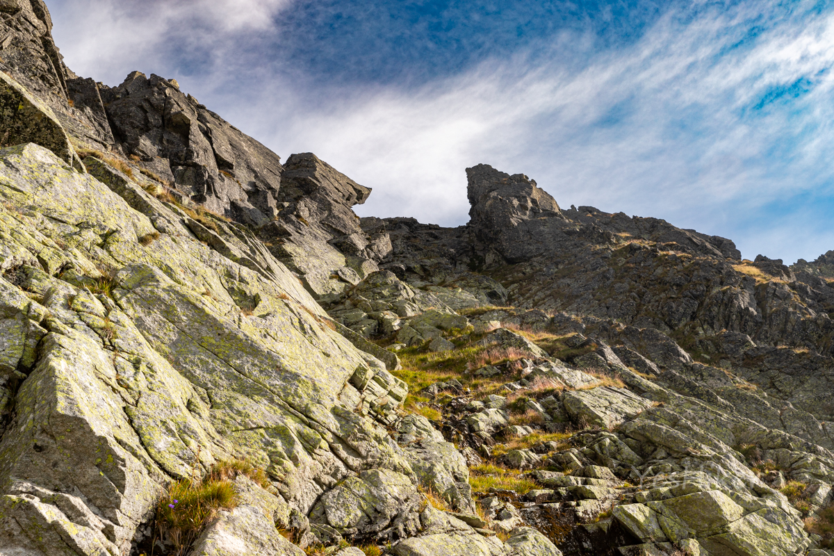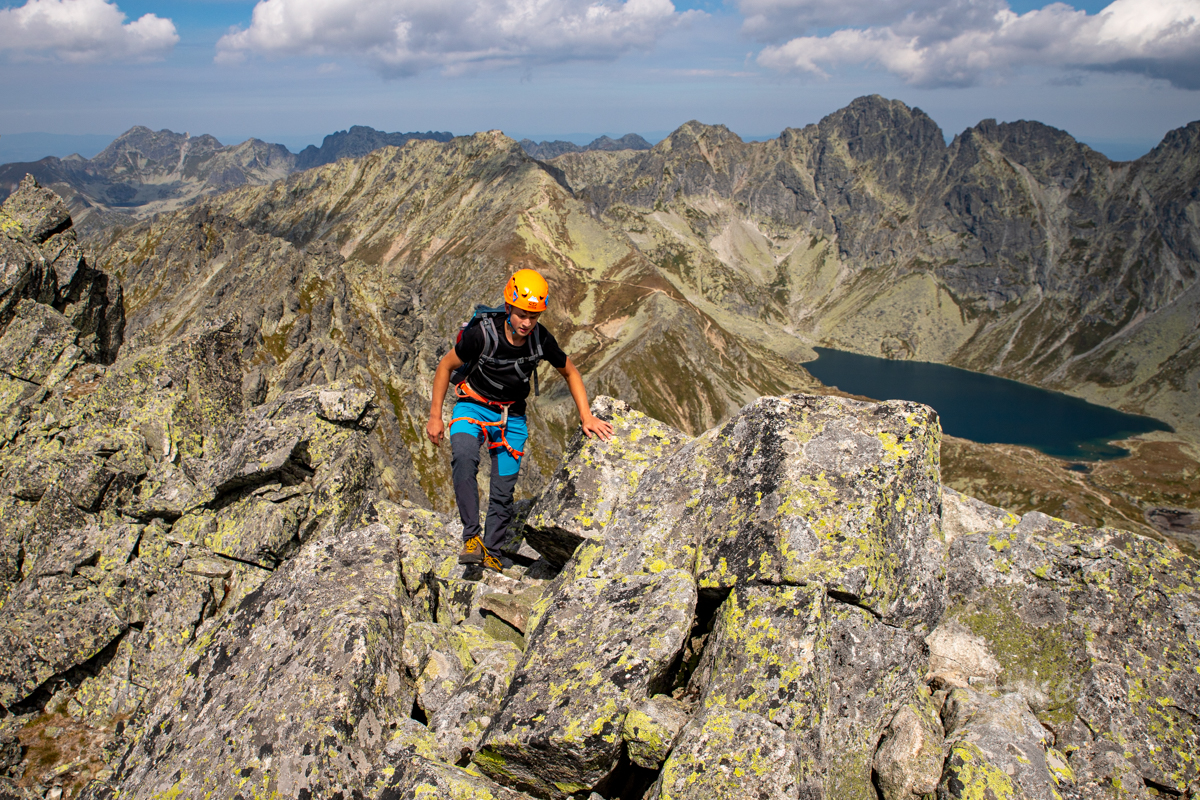 Pokračujeme směrem k Anjelskému hangu (1950 m n. m.) a Capiemu plesu (2050 m n. m.), kde opouštíme žlutou značku. Počasí přeje, a tak se rozhodujeme projít co nejdelší úsek hřebene. Začínáme stoupat do Mlynického sedla (2263 m n. m.), kde hřebenovka opravdu začíná.